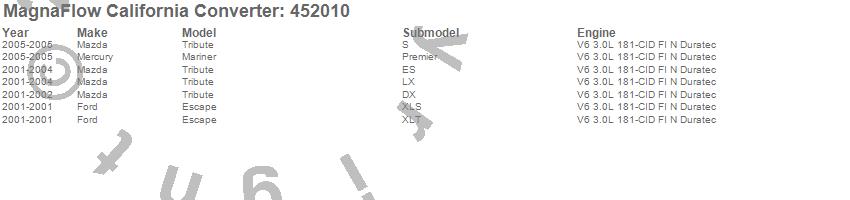 Below is an abreviated list of applications for the Direct Fit California Catalytic Converter.