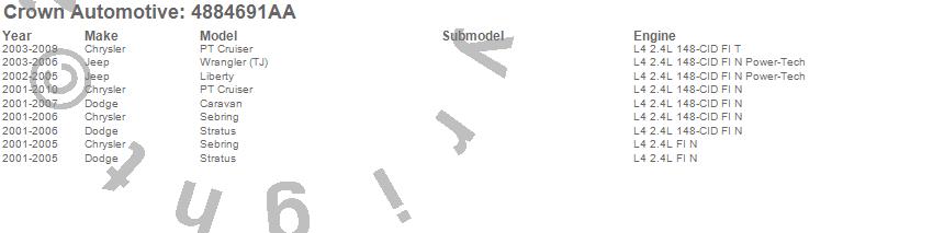 Caravan, Liberty, PT Cruiser, Sebring, Stratus, Wrangler (TJ), Chrysler, Dodge, Jeep, 2010, 2009, 2008, 2007, 2006, 2005, 2004, 2003, 2002, 2001 more…
