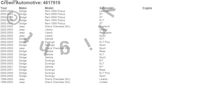 Dakota, Durango, Grand Cherokee (WJ), Liberty, Ram 1500, Ram 2500, Ram 3500, Dodge, Jeep, 2004, 2003, 2002, 2001, 2000, 1999 more…