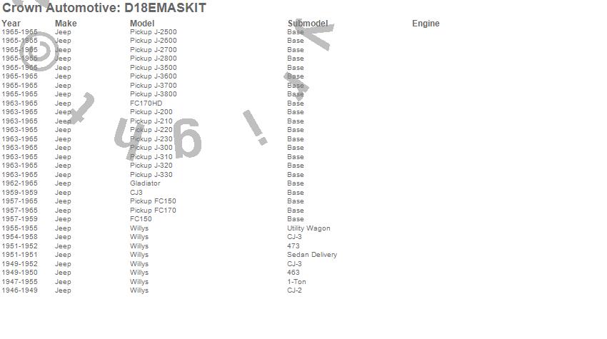 1-Ton Pickup, CJ-2A, CJ-3A, CJ-3B, FC150, FC170, FC170HD, Gladiator, J-200, J-210, J-220, J-230, J-2500, J-2600, J-2700, J-2800, J-300, J-310, J-320, J-330 more…