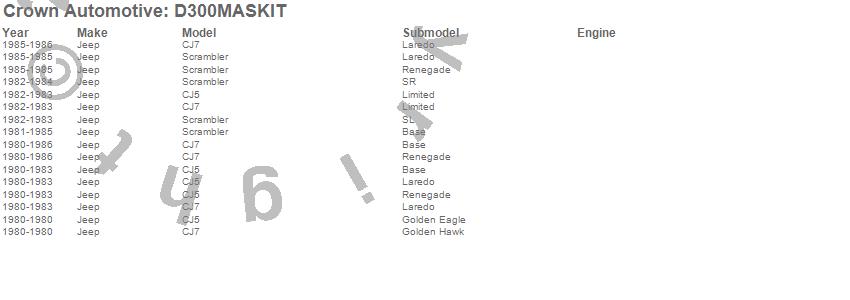 Crown Automotive is the premier manufacturer and distributor of quality replacement parts for Jeep® CJ™, Wrangler™, Cherokee™, Grand Cherokee™, Liberty™, and Commander™."From humble beginnings in 1963 in a small Boston storefront, Crown Automotive has consistently maintained its commitment to offering only quality parts and exceptional service. Today, with warehouses in Massachusetts, Georgia, Nevada, Spain, and the Czech Republic, totaling over 160,000 square feet, Crown Automotive continues to be the leader in quality replacement parts for Jeep® vehicles. With over 8,000 different parts in stock for Jeep® vehicles from 1942 on up, Crown has the largest stock of replacement parts for Jeep® vehicles, including factory-discontinued parts. In fact, many of the older Jeeps are still on (and off) the road thanks to Crown parts. The Crown line consists of axle, body, brake, clutch, cooling, driveline, electrical, engine, exhaust, fuel, steering, suspension, transmission and transfer case components. Crown Automotive also offers an exclusive line of component kits and accessory products. Because we know that Jeeps are driven harder than most other vehicles, we emphasize offering only quality parts. In fact, we test parts on Jeeps before distributing them to our dealers to insure that they meet our standards for quality. Crown also supports its entire line with a 12 month/12,000 mile warranty to insure our dealers and their customers of our commitment to offering quality parts. We know from experience that Jeep® owners would rather pay a little more for a good quality part that's backed by a strong guarantee. But we know that price is important as well. So, not only will you find Crown parts to be of exceptional quality, but you'll find them at a great price too.