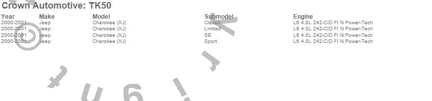 Crown Automotive Tune Up Kit TK50 Features: