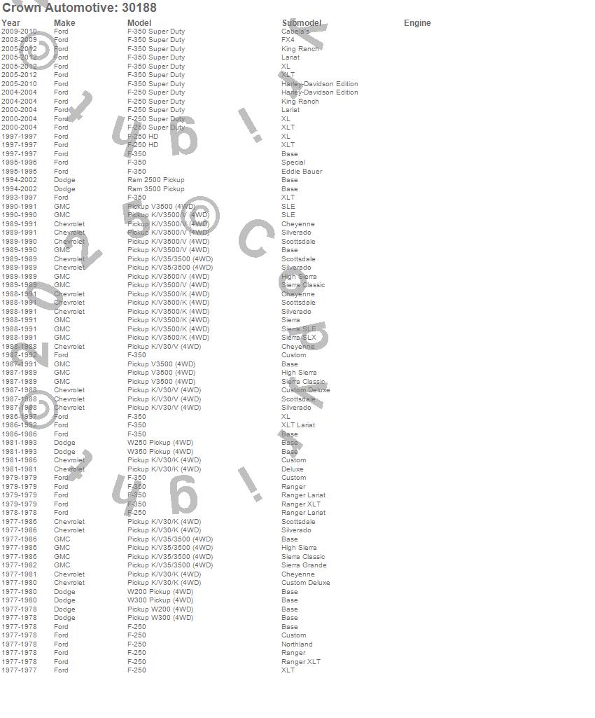 F-250, F-250 Super Duty, F-350, F-350 Super Duty, K30 Pickup, K35 Pickup, K3500 Pickup, Ram 2500, Ram 3500, V30 Pickup, V3500 Pickup, W200 Pickup, W250 Pickup, W300 Pickup, W350 Pickup, Chevrolet, Dodge, Ford, GMC, 2012 more…