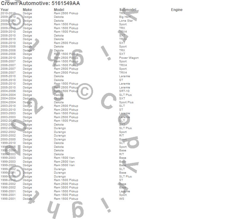 Dakota, Durango, Ram 1500, Ram 1500 Van, Ram 2500, Ram 2500 Van, Ram 3500, Ram 3500 Van, Dodge, 2010, 2009, 2008, 2007, 2006, 2005, 2004, 2003, 2002, 2001, 2000 more…