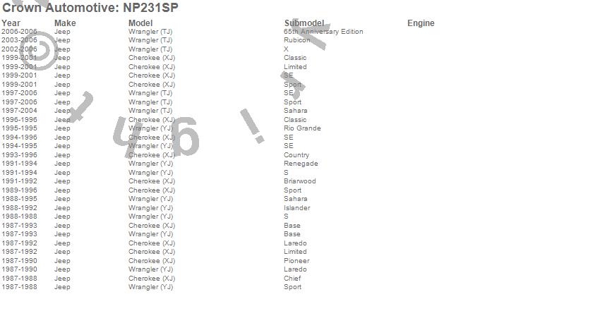 Crown Automotive Transfer Case Small Parts Kit NP231SP Features: