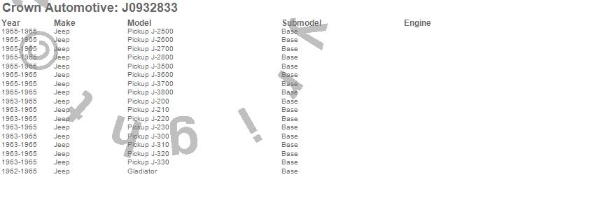 Gladiator, J-200, J-210, J-220, J-230, J-2500, J-2600, J-2700, J-2800, J-300, J-310, J-320, J-330, J-3500, J-3600, J-3700, J-3800, Jeep, 1965, 1964 more…