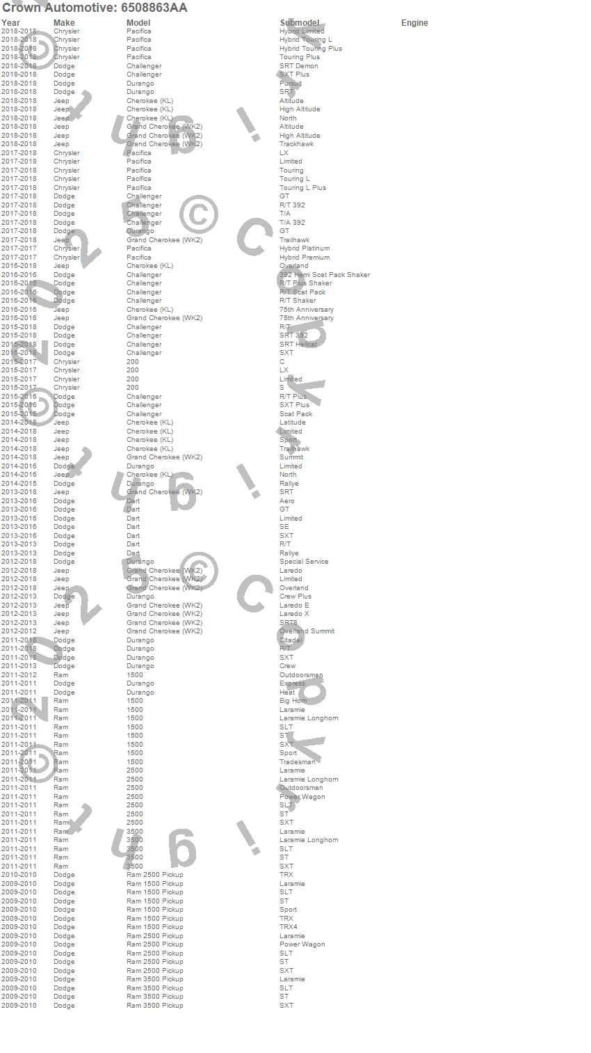 1500, 2500, 3500, Challenger, Cherokee (KL), Dart, Durango, Grand Cherokee (WK2), Ram 1500, Ram 2500, Ram 3500, Dodge, Jeep, Ram, 2015, 2014, 2013, 2012, 2011, 2010 more…