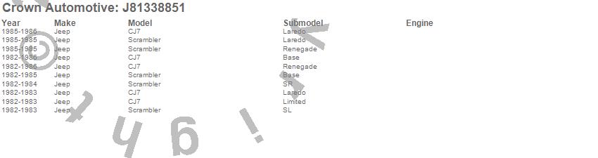 Crown Automotive is the premier manufacturer and distributor of quality replacement parts for Jeep® CJ™, Wrangler™, Cherokee™, Grand Cherokee™, Liberty™, and Commander™."From humble beginnings in 1963 in a small Boston storefront, Crown Automotive has consistently maintained its commitment to offering only quality parts and exceptional service. Today, with warehouses in Massachusetts, Georgia, Nevada, Spain, and the Czech Republic, totaling over 160,000 square feet, Crown Automotive continues to be the leader in quality replacement parts for Jeep® vehicles. With over 8,000 different parts in stock for Jeep® vehicles from 1942 on up, Crown has the largest stock of replacement parts for Jeep® vehicles, including factory-discontinued parts. In fact, many of the older Jeeps are still on (and off) the road thanks to Crown parts. The Crown line consists of axle, body, brake, clutch, cooling, driveline, electrical, engine, exhaust, fuel, steering, suspension, transmission and transfer case components. Crown Automotive also offers an exclusive line of component kits and accessory products. Because we know that Jeeps are driven harder than most other vehicles, we emphasize offering only quality parts. In fact, we test parts on Jeeps before distributing them to our dealers to insure that they meet our standards for quality. Crown also supports its entire line with a 12 month/12,000 mile warranty to insure our dealers and their customers of our commitment to offering quality parts. We know from experience that Jeep® owners would rather pay a little more for a good quality part that's backed by a strong guarantee. But we know that price is important as well. So, not only will you find Crown parts to be of exceptional quality, but you'll find them at a great price too.