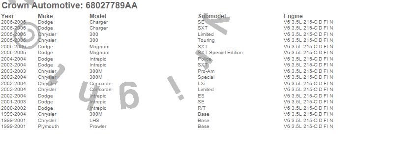 300, 300M, Charger, Concorde, Intrepid, LHS, Magnum, Prowler, Chrysler, Dodge, Plymouth, 2006, 2005, 2004, 2003, 2002, 2001, 2000, 1999 more…