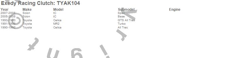 Exedy Racing Clutch Hyper Clutch/Flywheel Accessory Kit TYAK104 Features: