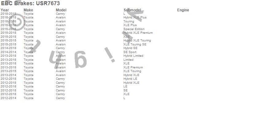 Below is an abreviated list of applications for the EBC USR Series Sport Slotted Rotor.