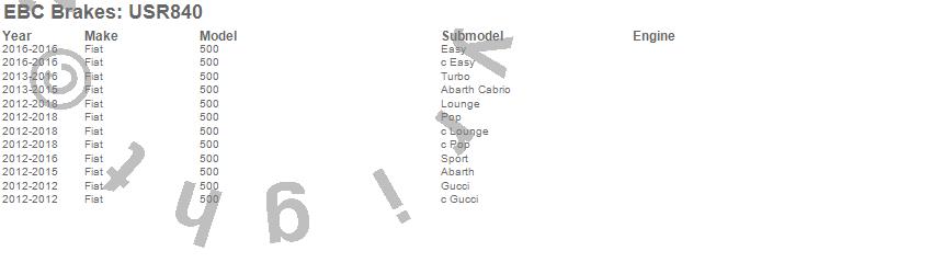 Below is an abreviated list of applications for the EBC USR Series Sport Slotted Rotor.