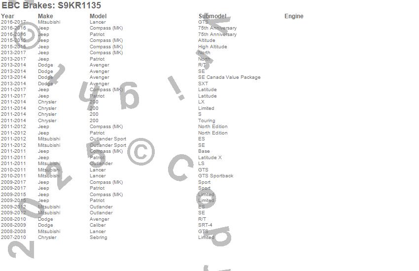 Below is an abreviated list of applications for the S9 Kits Yellowstuff and USR Rotors.