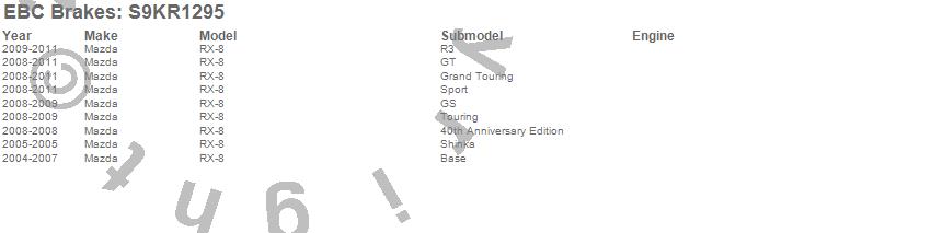 Below is an abreviated list of applications for the S9 Kits Yellowstuff and USR Rotors.