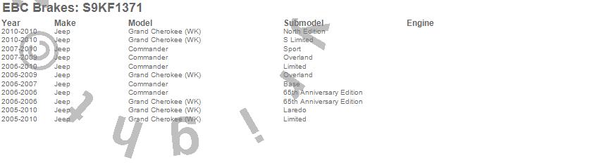 Below is an abreviated list of applications for the S9 Kits Yellowstuff and USR Rotors.