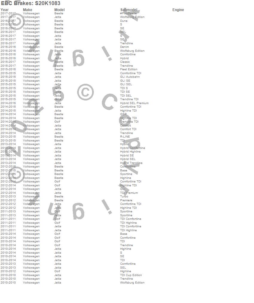 Below is an abreviated list of applications for the S20 Kits Ultimax and Plain Rotors.