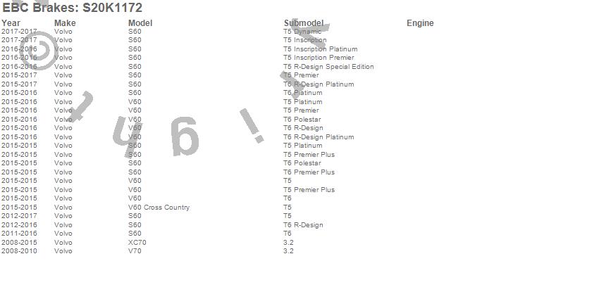 Below is an abreviated list of applications for the S20 Kits Ultimax and Plain Rotors.