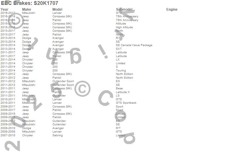 Below is an abreviated list of applications for the S20 Kits Ultimax and Plain Rotors.