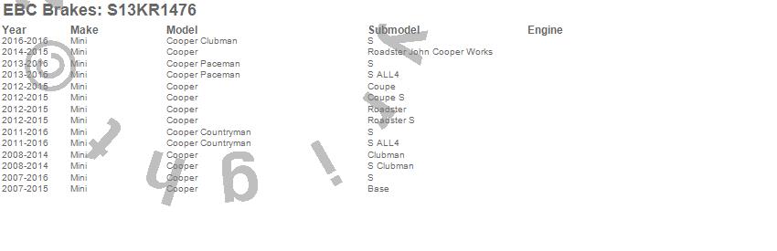 Below is an abreviated list of applications for the S13 Kits Yellowstuff and RK Rotors.