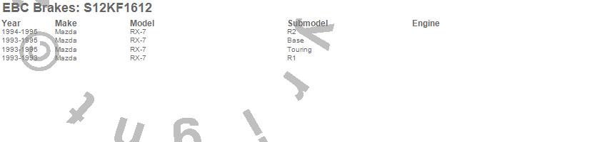 Below is an abreviated list of applications for the S12 Kits Redstuff and RK Rotors.