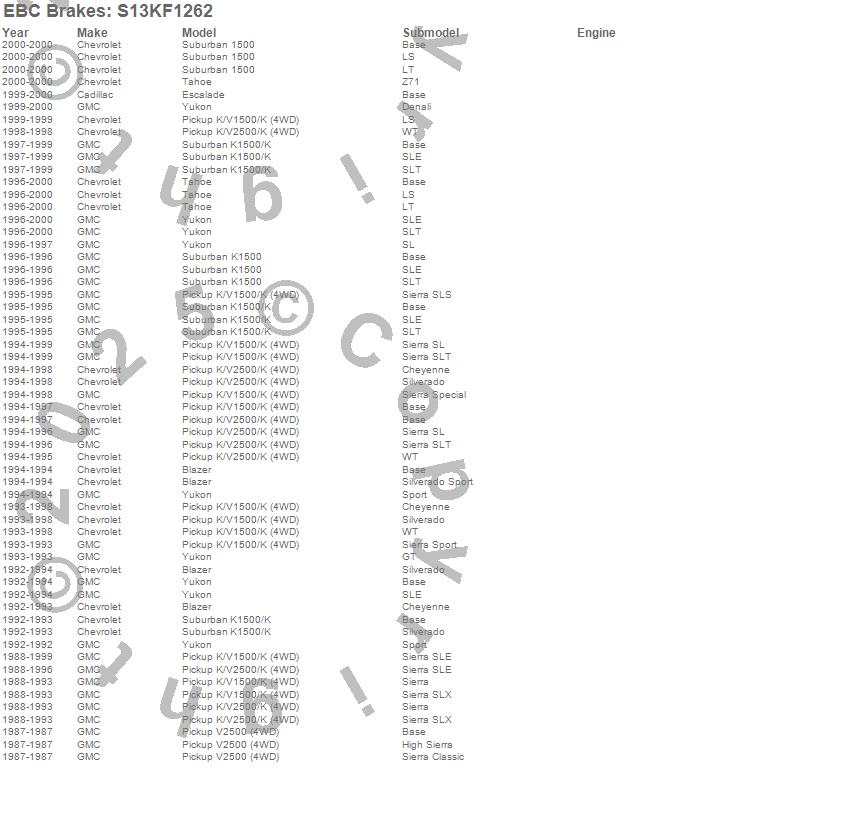 Below is an abreviated list of applications for the S13 Kits Yellowstuff and RK Rotors.