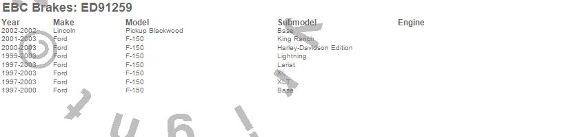 Below is an abreviated list of applications for the EBC Truck/Jeep And SUV Extra Duty Brake Pads.