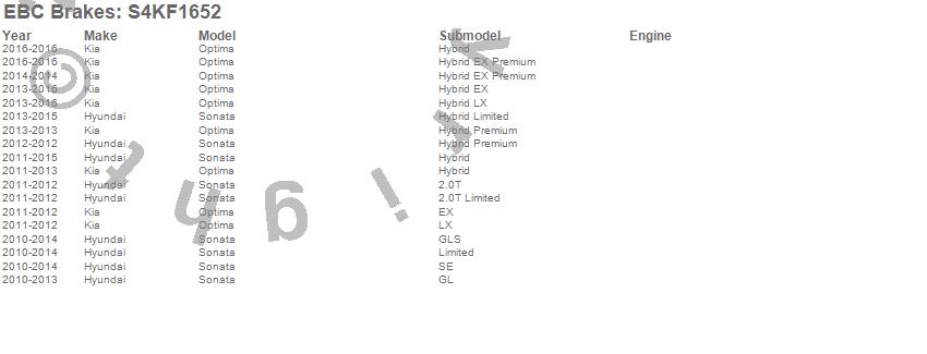 Below is an abreviated list of applications for the S4 Kits Redstuff and USR rotor.