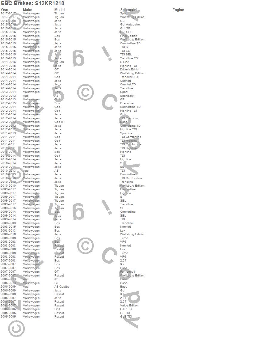 Below is an abreviated list of applications for the S12 Kits Redstuff and RK Rotors.