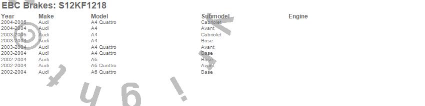 Below is an abreviated list of applications for the S12 Kits Redstuff and RK Rotors.