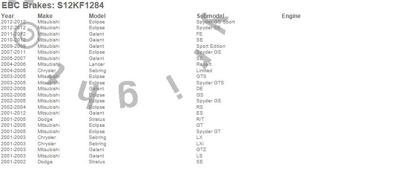Below is an abreviated list of applications for the S12 Kits Redstuff and RK Rotors.