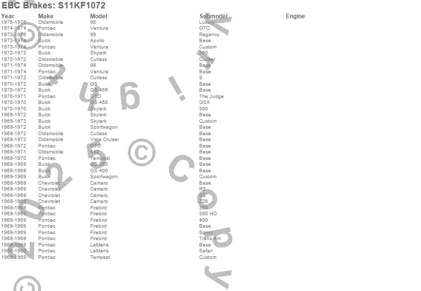 442, 98, Apollo, Camaro, Cutlass, Firebird, GS, GS 350, GS 400, GS 455, GTO, LeMans, Skylark, Sportwagon, Tempest, Ventura, Vista Cruiser, Buick, Chevrolet, Oldsmobile more…