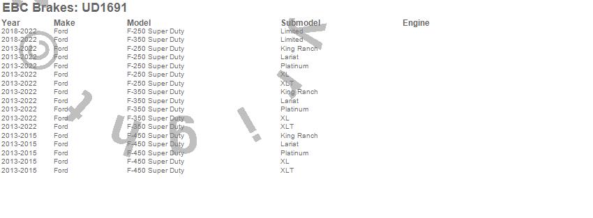 Below is an abreviated list of applications for the EBC Ultimax OEM Replacement Brake Pads.