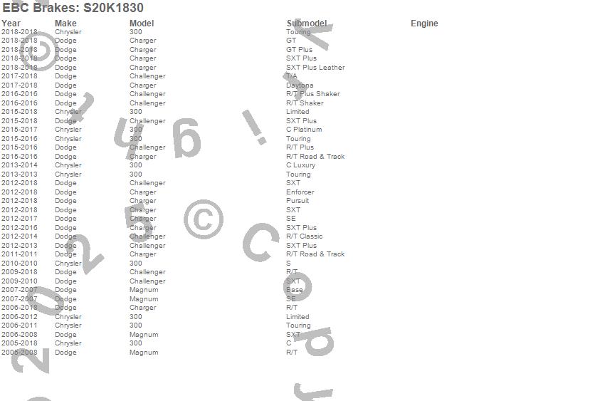 Below is an abreviated list of applications for the S20 Kits Ultimax and Plain Rotors.