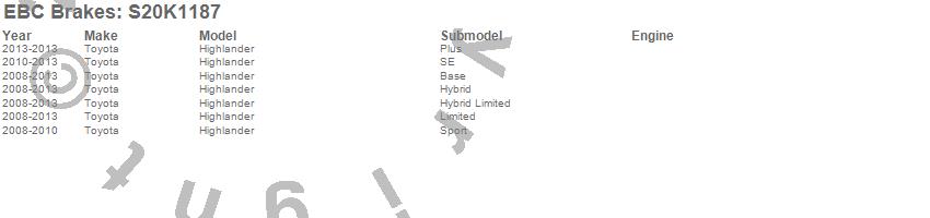 Below is an abreviated list of applications for the S20 Kits Ultimax and Plain Rotors.