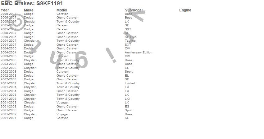 Below is an abreviated list of applications for the S9 Kits Yellowstuff and USR Rotors.