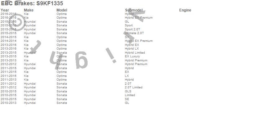 Below is an abreviated list of applications for the S9 Kits Yellowstuff and USR Rotors.