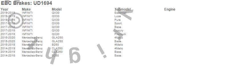 Below is an abreviated list of applications for the EBC Ultimax OEM Replacement Brake Pads.