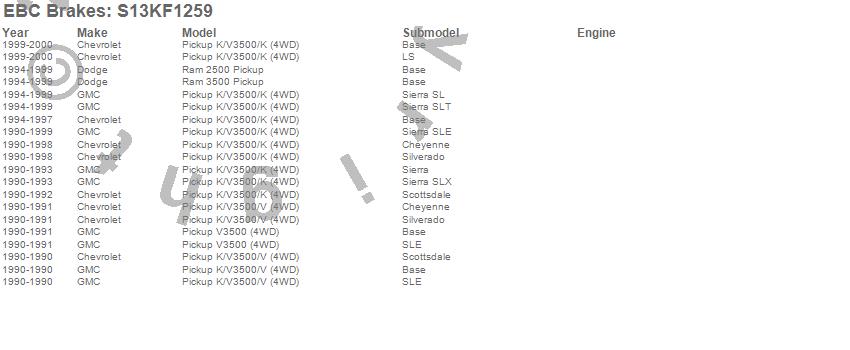 Below is an abreviated list of applications for the S13 Kits Yellowstuff and RK Rotors.