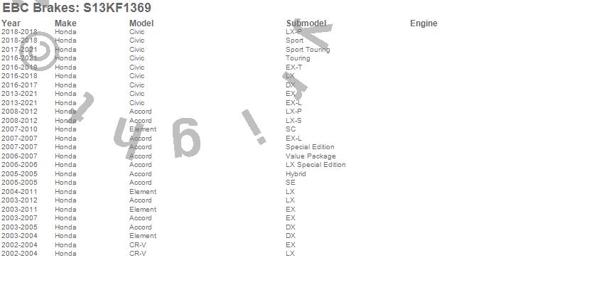 Below is an abreviated list of applications for the S13 Kits Yellowstuff and RK Rotors.