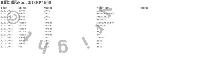 Below is an abreviated list of applications for the S13 Kits Yellowstuff and RK Rotors.
