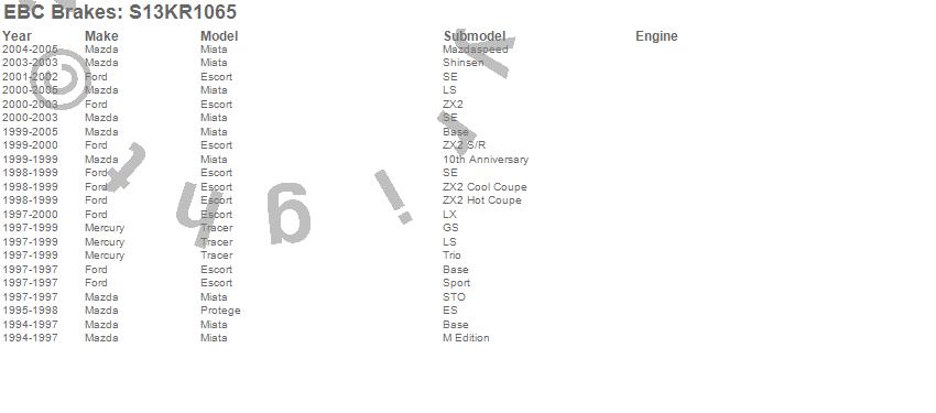 Below is an abreviated list of applications for the S13 Kits Yellowstuff and RK Rotors.