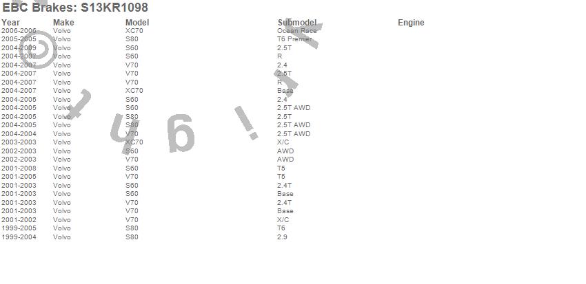 Below is an abreviated list of applications for the S13 Kits Yellowstuff and RK Rotors.