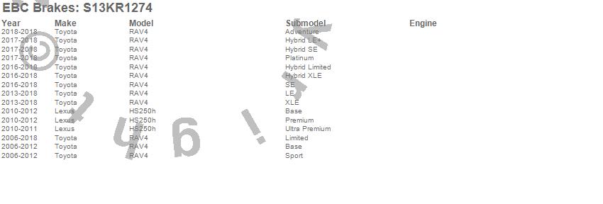 Below is an abreviated list of applications for the S13 Kits Yellowstuff and RK Rotors.