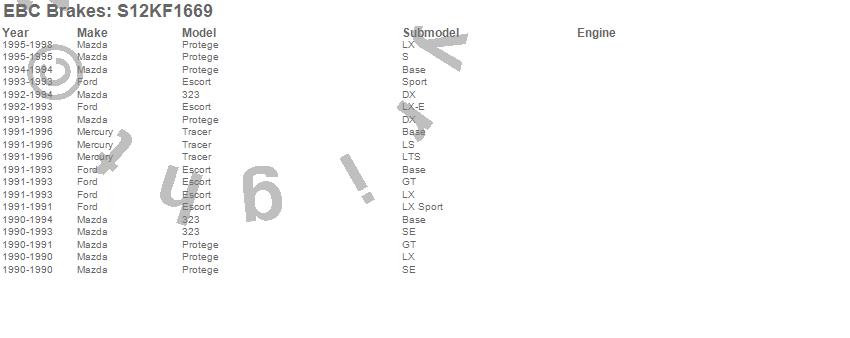 Below is an abreviated list of applications for the S12 Kits Redstuff and RK Rotors.