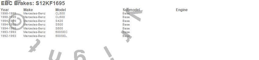 Below is an abreviated list of applications for the S12 Kits Redstuff and RK Rotors.