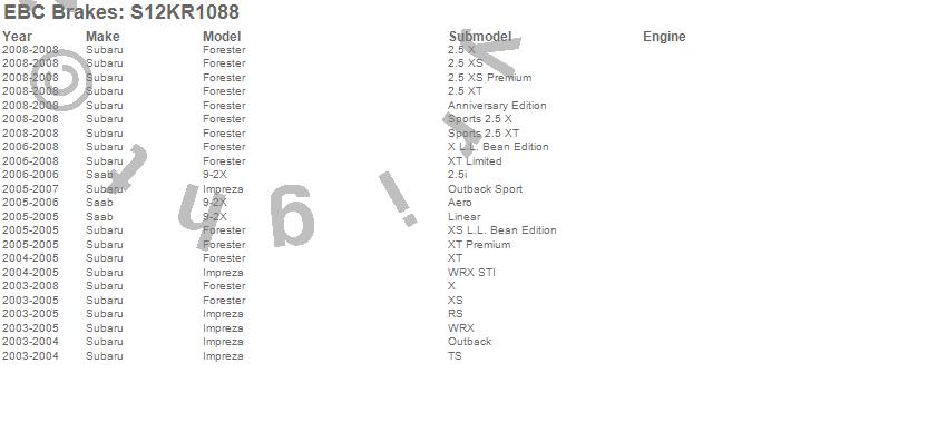 Below is an abreviated list of applications for the S12 Kits Redstuff and RK Rotors.