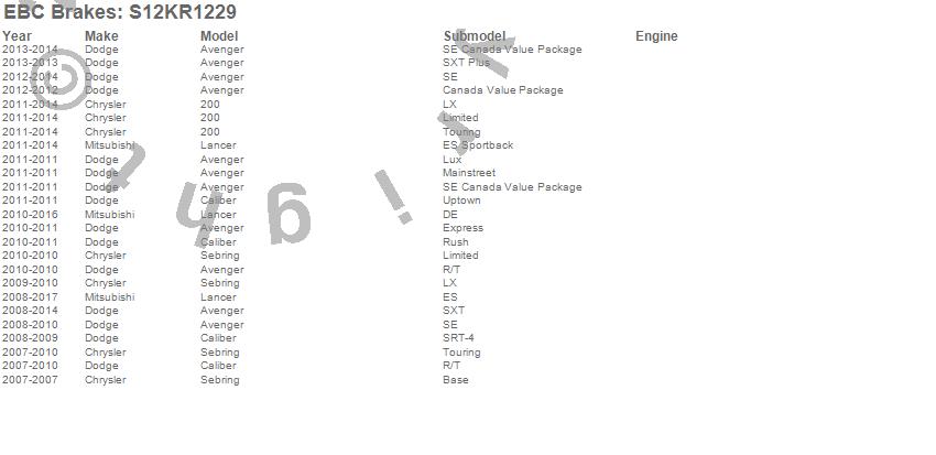 Below is an abreviated list of applications for the S12 Kits Redstuff and RK Rotors.