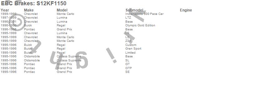 Below is an abreviated list of applications for the S12 Kits Redstuff and RK Rotors.