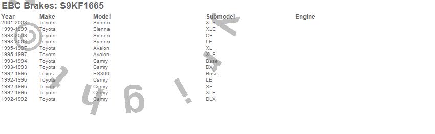 Below is an abreviated list of applications for the S9 Kits Yellowstuff and USR Rotors.