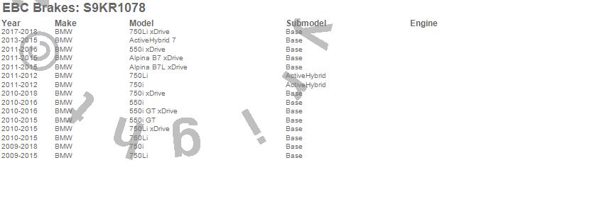 Below is an abreviated list of applications for the S9 Kits Yellowstuff and USR Rotors.